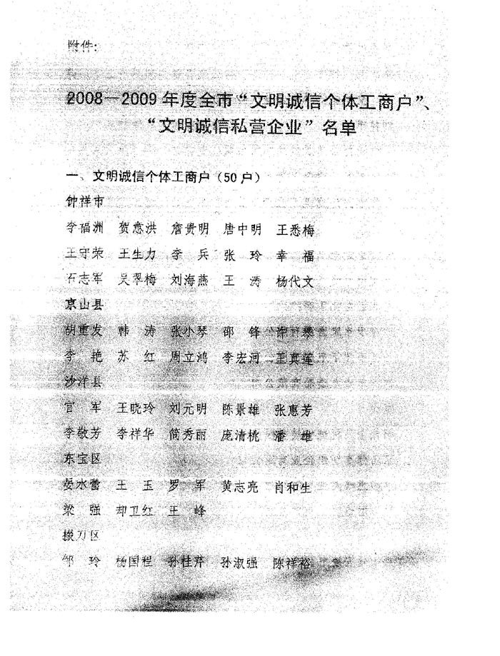 2009年12月榮獲2008-2009年度“文明誠信個體工商戶”